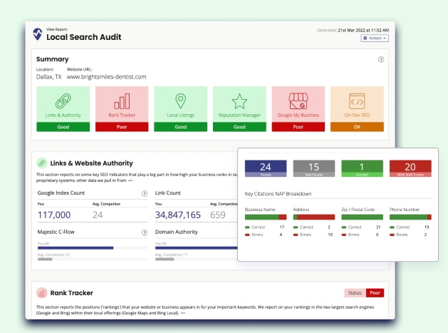 Carrying out a local SEO audit allows you to evaluate and optimise key elements such as Google My Business profiles, local citations, on-page SEO, and online reviews. Tools like BrightLocal and SEMrush are great for this by providing comprehensive insights and analytics, enabling businesses to pinpoint areas of improvement, track their local search performance, identify relevant keywords, and stay up-to-date with competitor strategies.